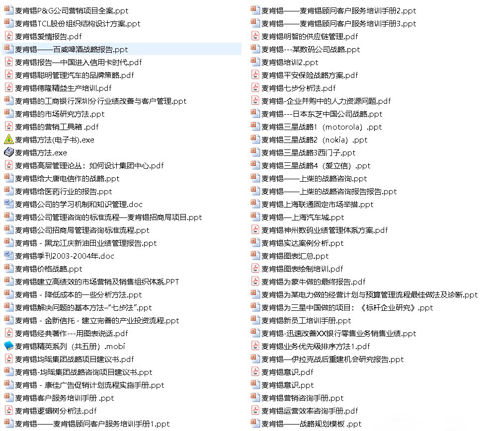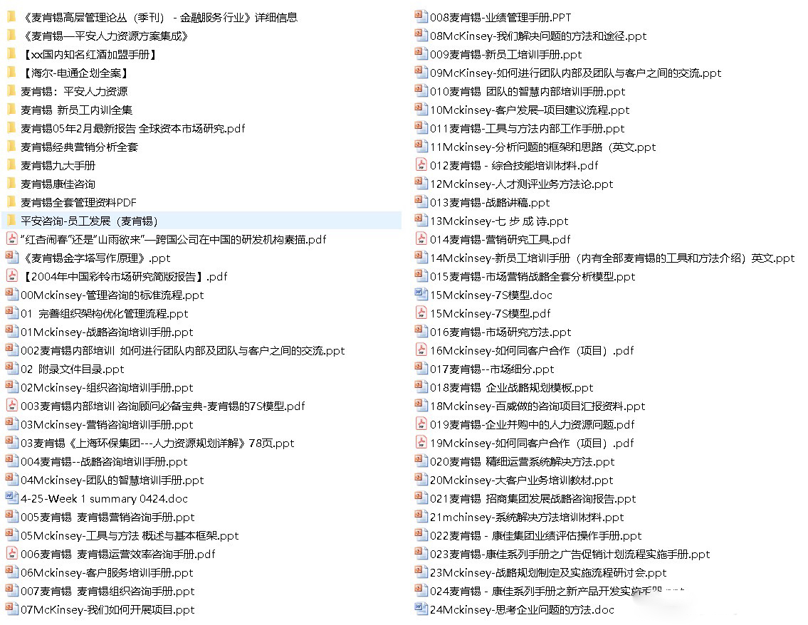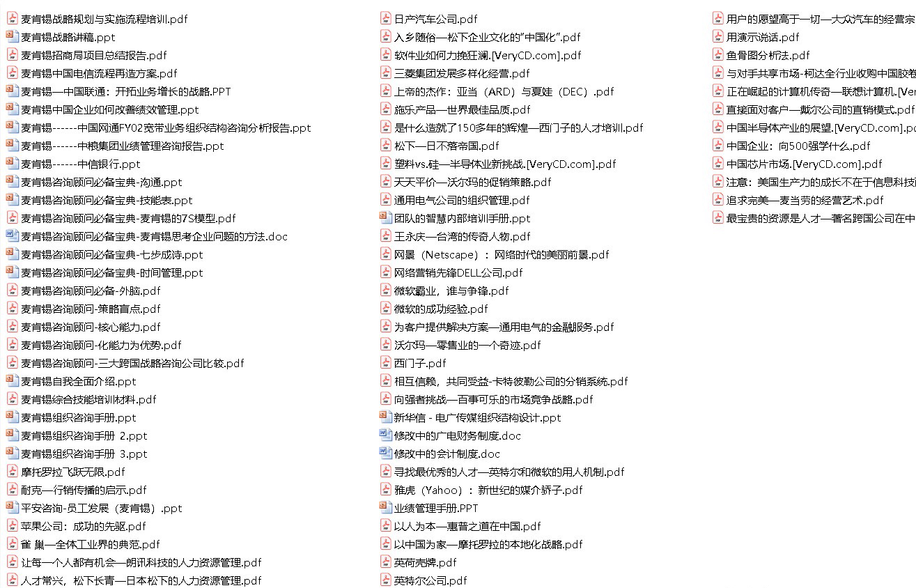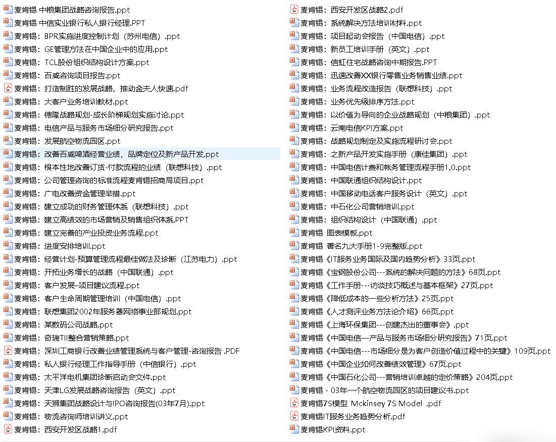 zhouseml 发表于 2019-2-24 01:01 9元资料失效,已删除 世界著名咨询公司麦肯锡资料合集超540份 除了麦肯锡,资料包中也包括罗兰贝格/科尔 ...