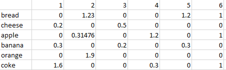 原始数据集格式(部分):0代表没有买,大于0的数字代表已购买。