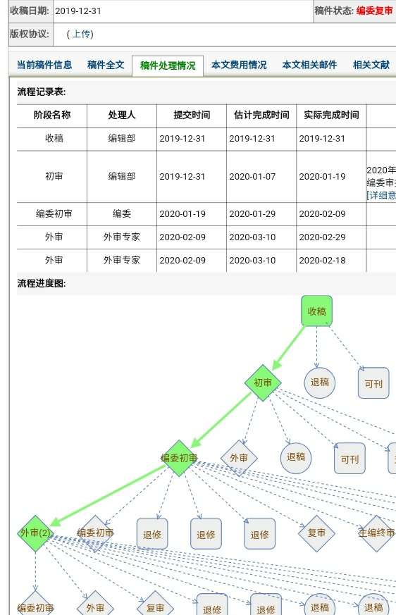 欧阳桃红 发表于 2019-10-18 18:54 亲,你的状态变了没,我的也是编委复审,看之前贴吧这个状态是稿件处理中,不知道编辑复审跟那个状态又啥 ...