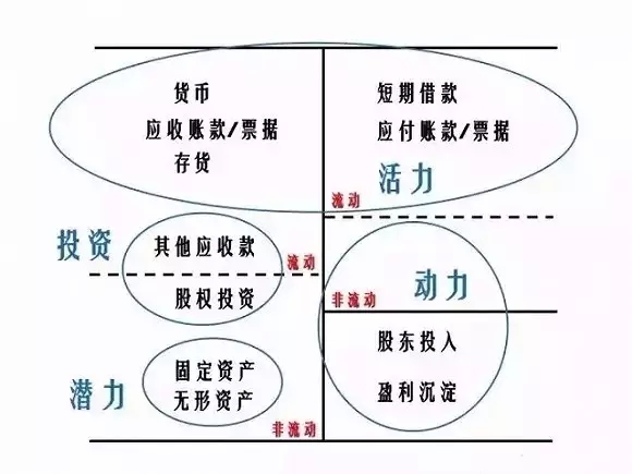 首先,最重要的是货币、应收账款/票据、存货,以及短期借款和应付账款/票据,因为这些体现了一家公司的活力。活力就是说这家公司在没有其他任何东西的时候,通过应收账款存货是可以生存下来的。公司可以把存货给卖掉,就有收入,把应收账款收回来就有收入,有货币也能够回来。从负债的方面来讲,就看这家公司有多好的一个短期借款的能力,以及有多好的一个对上游供应商的欠款的能力,就是应付账款和应付票据。