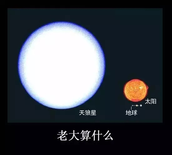 可是,我们接着往下看,看我天狼星!没办法知道比太阳大多少了,天文数字,算不出来,总之大很多!
