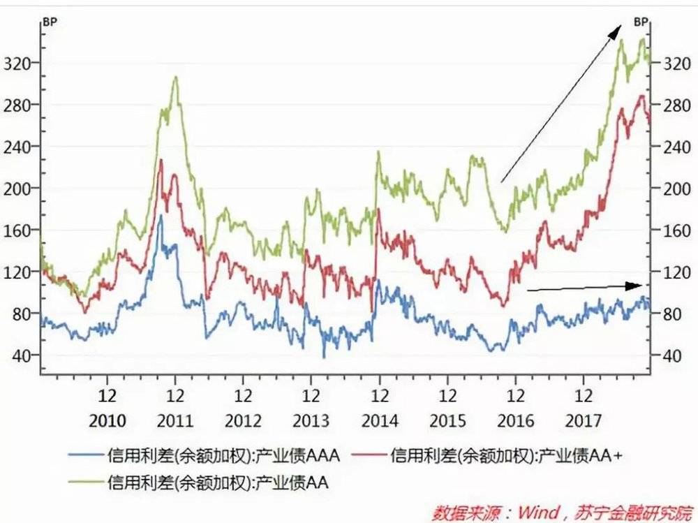 对银行来说,从2018年下半年已经开始出现“资产荒”,而本轮资产荒显示出不同信用等级企业融资成本分化。虽然整个资金面程序较为宽松状态,但高等级信用债融资成本较低,而低信用等级信用债融资成本依旧处于高位,两者间利差迅速扩大。