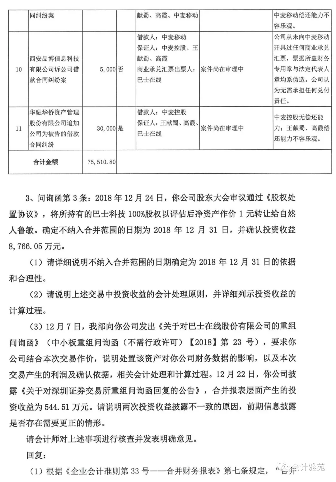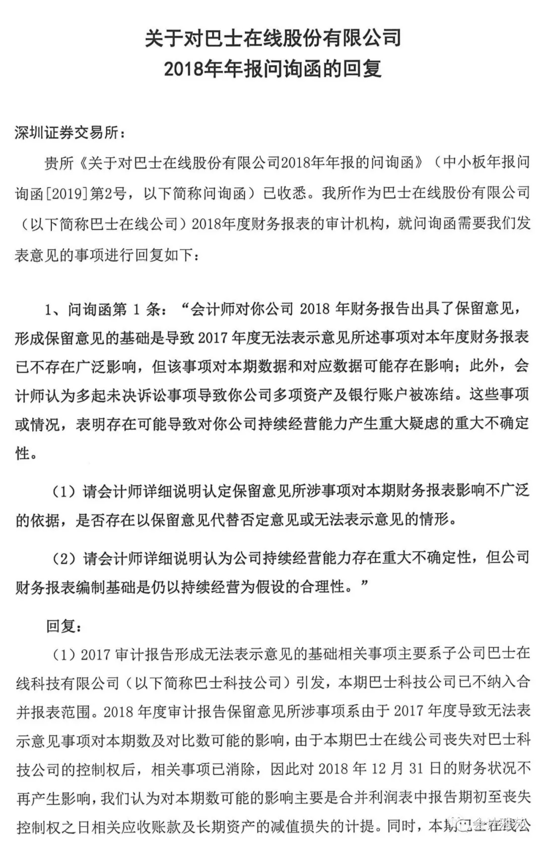 首份保留意见年报问询函回复