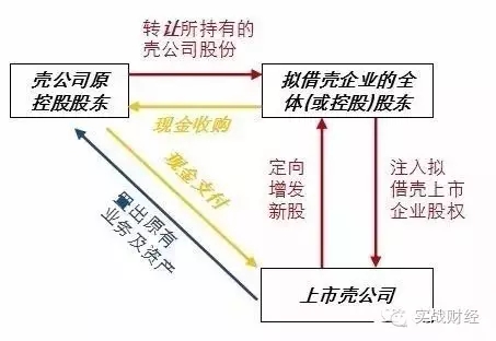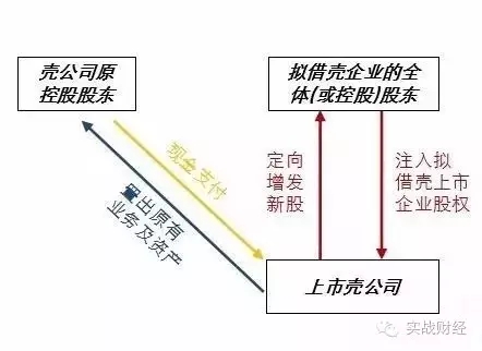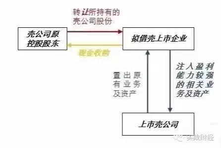 2、拟借壳企业控股股东取得壳公司的原有业务和资产后将其转让给壳公司原大股东,以换取后者所持有的壳公司股份,双方差额部分以现金补足。