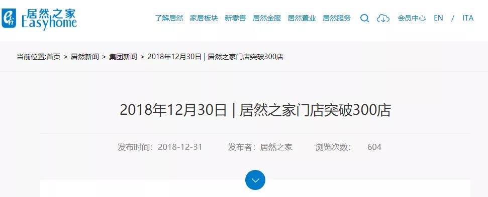 但居然之家官网则披露,2018年12月30日 | 居然之家门店突破300店。