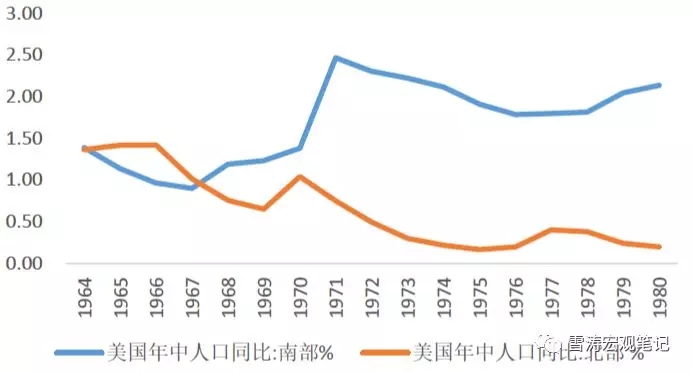 美国的南部和西部具有丰富的自然资源和广阔的空间地带,是发展新兴工业的理想地区。上世纪70年代开始,美国南部地区开始承接东北部及五大湖区制造业带的产业和人口迁移。人口流动和产业迁移带动了美国南部地区的经济和房价水平增长。随着人口的迁移和新兴产业的布局,昔日被贴上贫困落后、种族歧视、人口外流等标签的南部地区,逐渐成为了美国三大工业区之一的南部工业区,后来被称为美国的“阳光地带”。