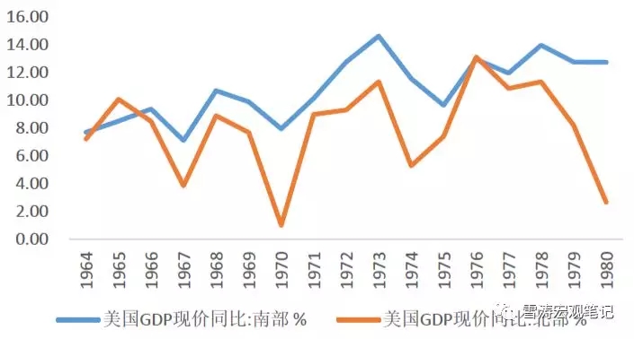 图21:美国南部地区的人口、GDP在70年代后增长迅速