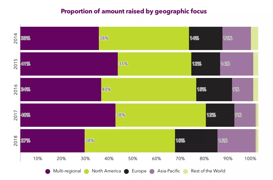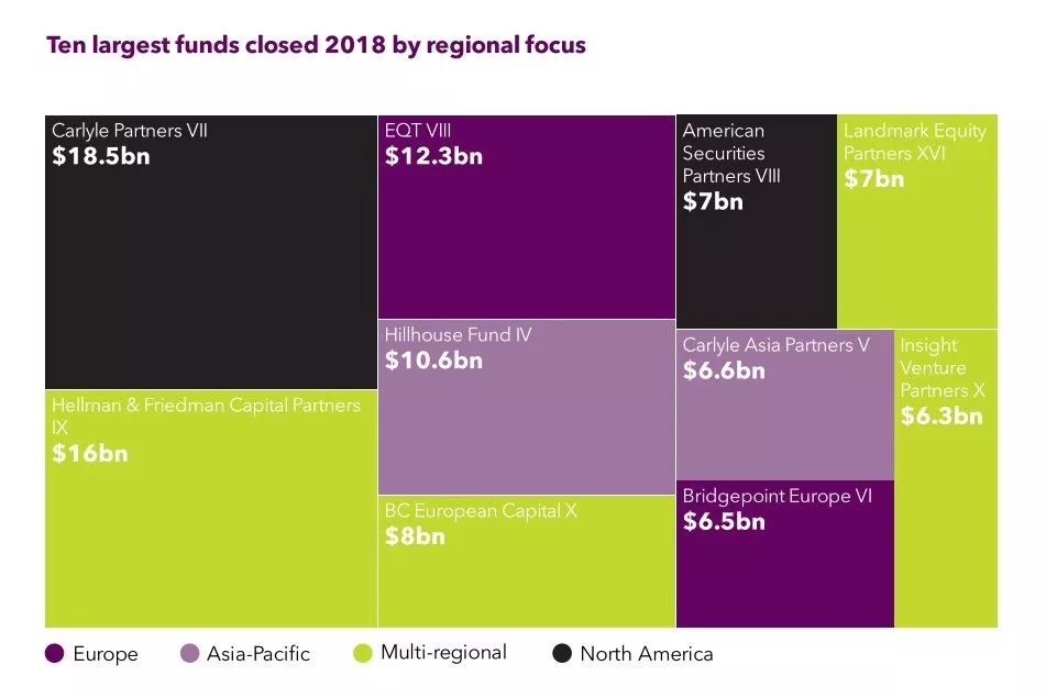 募资额统计口径:2018年中国境内募集完成的股权投资基金