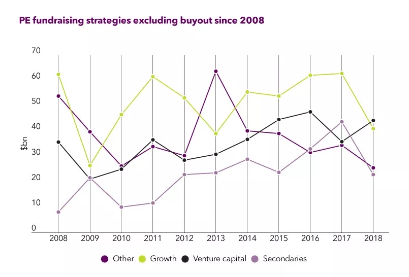 美元投资人中新人表现亮眼,对冲基金和家族办公室开始入场:他们的资金大举从二级转向一级,顺藤摸瓜开始收割一级市场的优质项目。安永预计,到2020年,将有28%的对冲基金会参与私募投资。例如管理约5亿美金资产的D1Capital,将有35%的资金投入到PE阶段;再如管理约130亿美金资产的Point72,在募集新的体量约为7.5亿美金的基金投入到VC阶段。