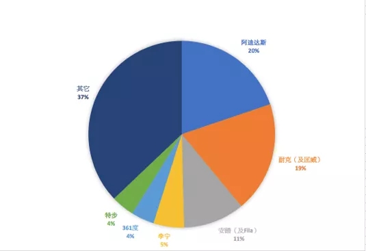 即便在中国市场,跨国体育品牌的市场份额也遥遥领先于本土品牌。 2017年,阿迪达斯、耐克(及旗下匡威)以20%、19%的市场份额位列前两名,安踏主品牌和旗下运营的斐乐(Fila)品牌共占11%的市场份额,李宁占5%,特步和361度分别占4%。