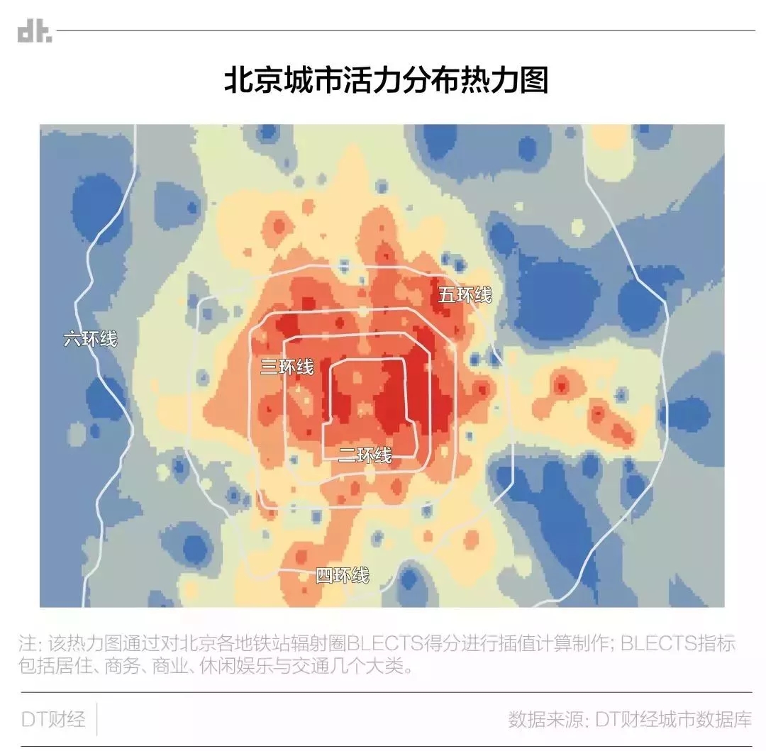 我们可以从地铁的活跃度来检测这个城市的核心地带,先看北京的: