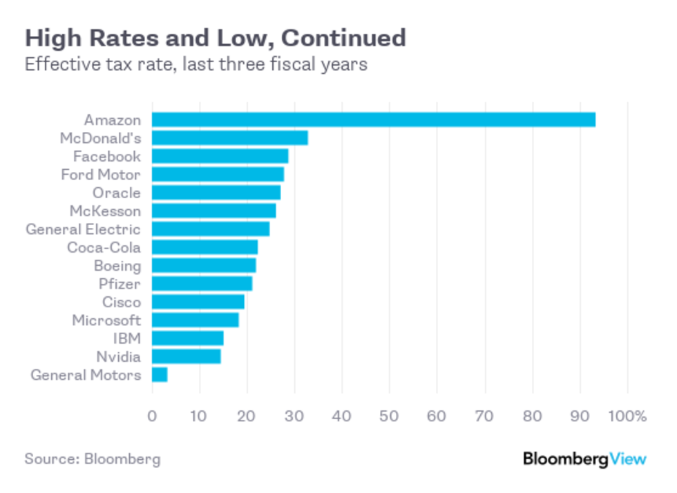 The prominent U.S. corporations facing low effective tax rates share some key characteristics. General Motors' super-teeny-weeny tax rate is a unique product of the government bailout that rescued it in 2009 -- its total reported income tax expense since then is negative $33.6 billion. Most of the other low-rate corporations are either in technology or pharmaceuticals. These companies tend to have lots of overseas earnings, which lowers the effective rate because, as noted, the U.S. statutory corporate rate is among the highest in the world. Their businesses also tend to be built around intangible assets, which can be moved around the world to the lowest-tax jurisdictions at the stroke of a pen.
