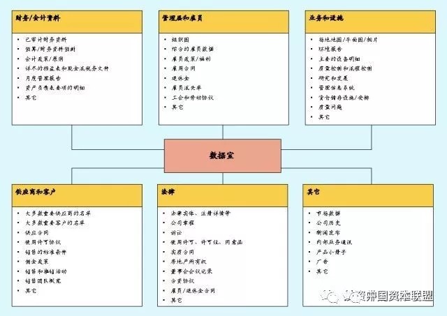 数据室包括按目录收集和分类的编汇材料;在参观数据室之后, 潜在投资方一般会问一些进一步跟进的问题。
