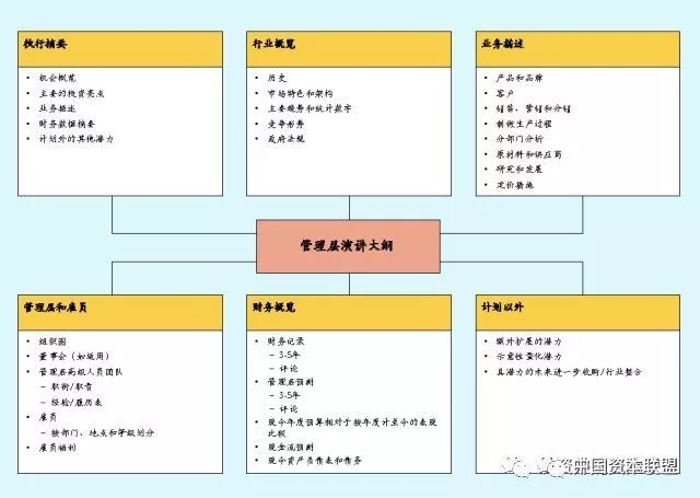 管理层介绍会一般在潜在投资方参观了资料室后举行,这使投资方能问及一些在保密信息备忘录和数据室中没有提供的信息;另外管理层介绍会也是买卖双方直接借此接触了解对方性格、素质、诚信的最佳时机。