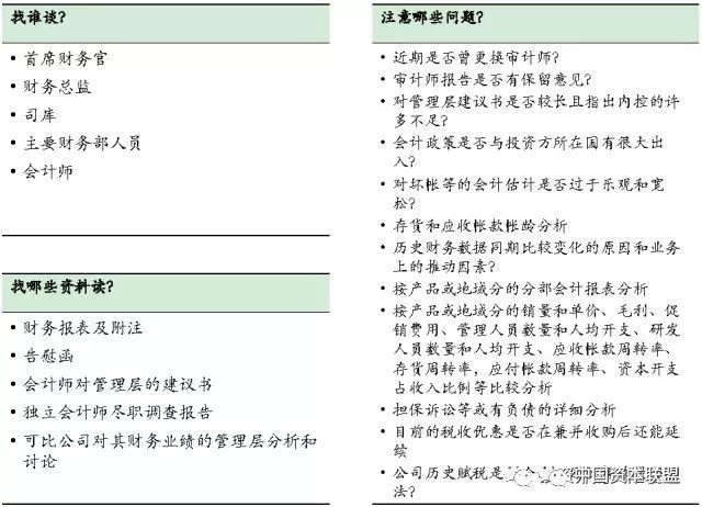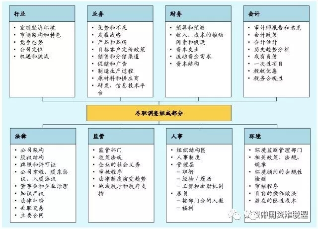 尽职调查就其范围而言需对公司的业务、财务、法律等各方面作全面的评估,从而降低交易的风险,减小交易的成本。