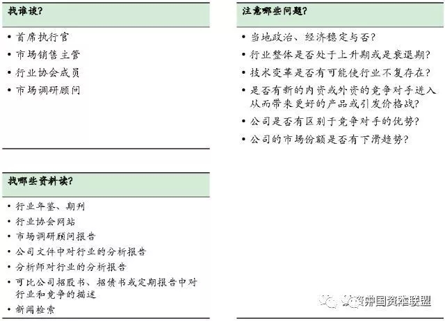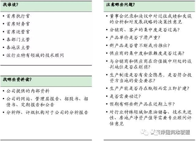 理解公司业务和运营的各主要方面,从侧面验证公司的优势和不足以及公司发展战略的有效性,对兼并收购后所能产生的收入和成本等方面协同效应作估计。