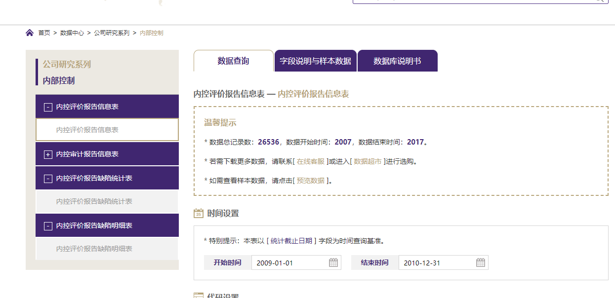跪求各位大佬帮忙。。具体入口为:CSMAR首页--数据中心--公司研究系列--内部控制--内控评价报告信息表