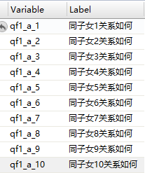 如图所示,以上是10个描述与子女关系的分类变量,赋值如下: