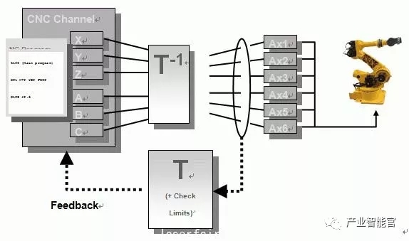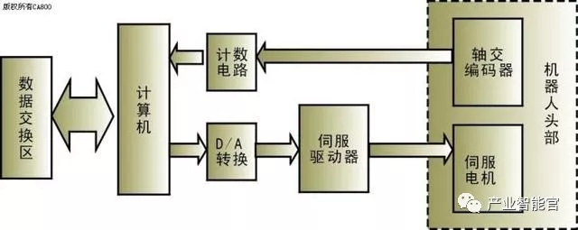 传感器将各个关节的运动输出信号反馈回伺服控制级计算机形成局部闭环控制,达到精确的控制机器人在空间的运动。