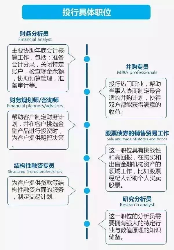 基本上所有的投资银行都有固定的职业阶梯,只要没有被开除,那你的职业道路就应该是这样的: