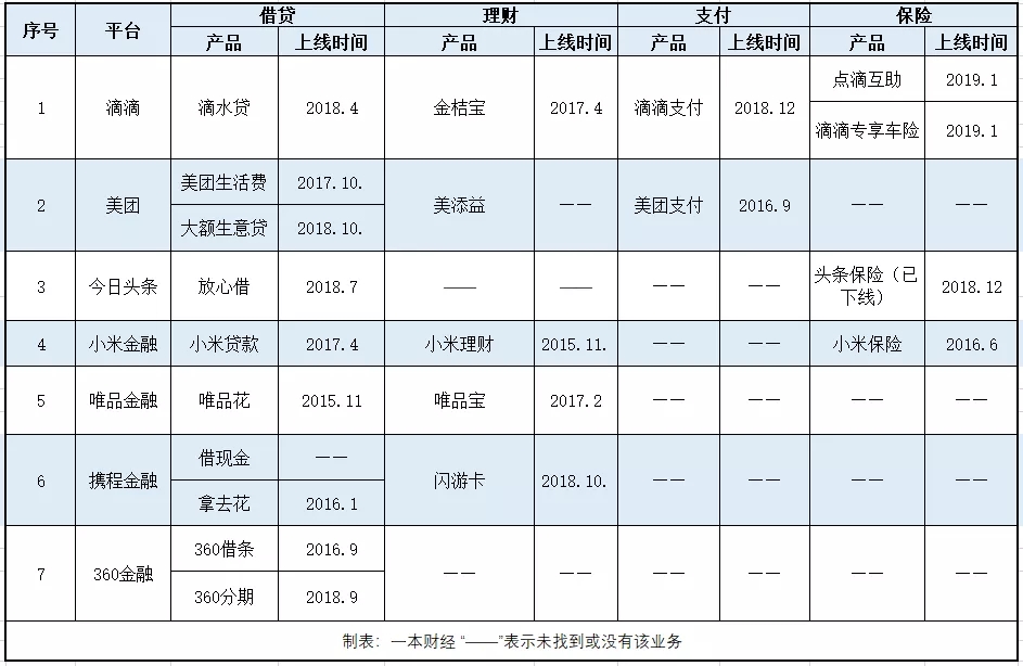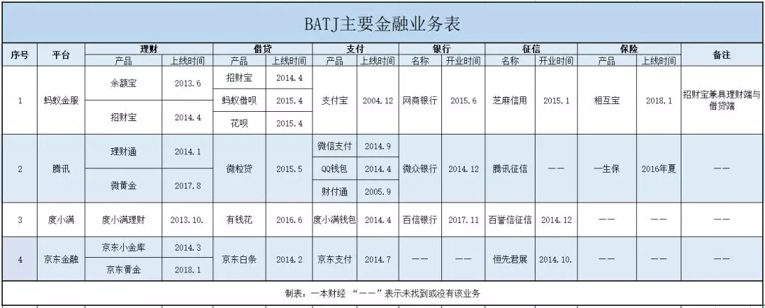 不止是BATJ,2018年,TMD(头条、美团、滴滴)在明里暗里,都开始涉足金融。就连携程、去哪儿、小米、OPPO、360等小巨头,也纷纷布局。