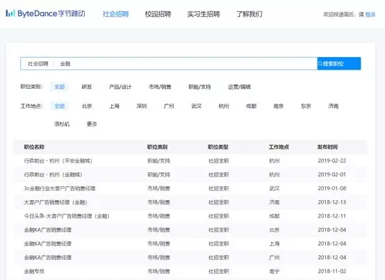 另外,在众多招聘平台上,均可找到今日头条招聘金融人才的相关信息。