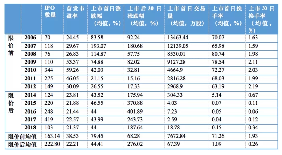 限价前市场逻辑在于“首日大涨、交易活跃”。限价前市盈率市场化程度更强,限价后市盈率则被限制在23以下。