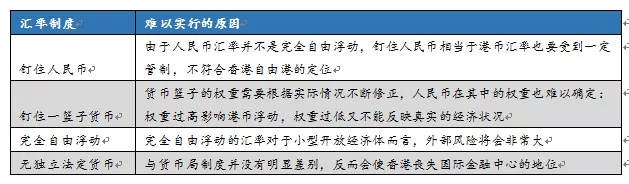 目前来看,港币与美元脱钩的时机并不成熟。从市场的角度,脱钩会引发大规模的投机活动,香港的金融市场与实体经济都会受到冲击;从政治的角度,脱钩必然损害联汇制的既得利益集团,如不动产所有者,这可能引发一定的政治成本。更重要的是,目前尚无可行的替代方案,可能的替代方案具有明显的不足之处(图8)。因此,联系汇率制仍然是香港最优的汇率制度,金管局有足够的意愿来维持。