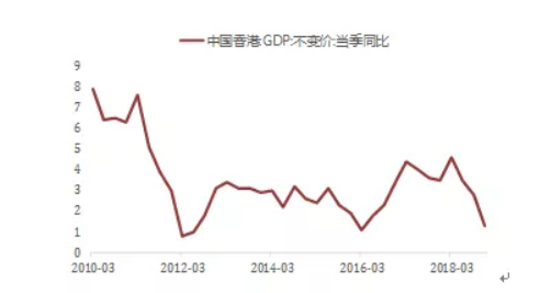 香港经济在2018年4季度出现大幅下滑,美国经济2018年表现良好。但是,展望2019年,美国经济大概率将出现一定下行,香港经济则有望在三季度企稳,二者之间的经济环境将趋向于收敛(图3)。