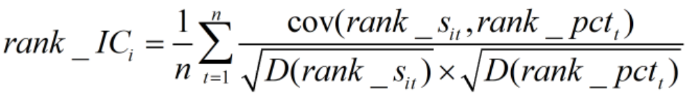因子IC的求解方式为:时间维度上因子与股票收益率相关系数的均值。因子rank IC求解原理与IC相同,不同的仅在于其使用的数据是因子在股票池中的排名而非其数值。这样的做法能够在统计学中避免很多问题,数值效果也更为有效。