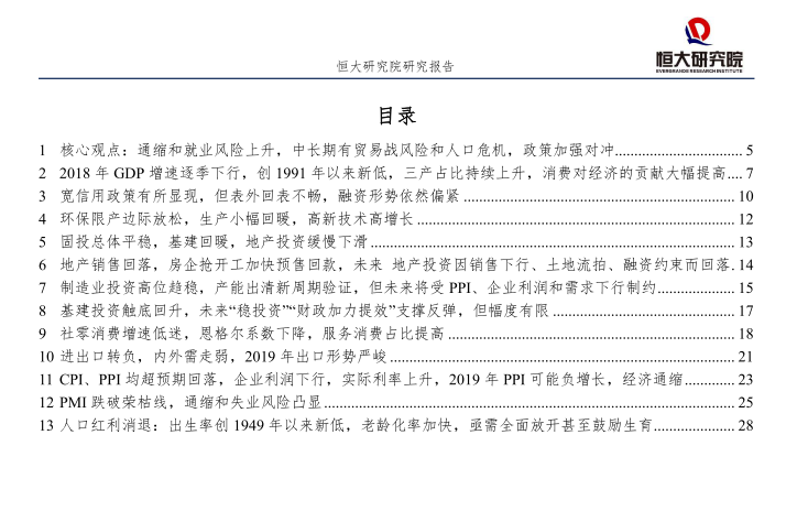 任泽平:拯救人口危机,周期通缩,政策对冲(全面解读12月经济金融数据)-20190123-恒大研究院-30页