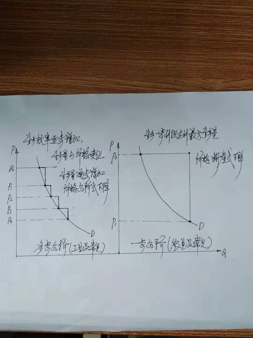 之后随着生产量的增加。价格一个台阶一个台阶向下下,直到产量最多,价格最低。