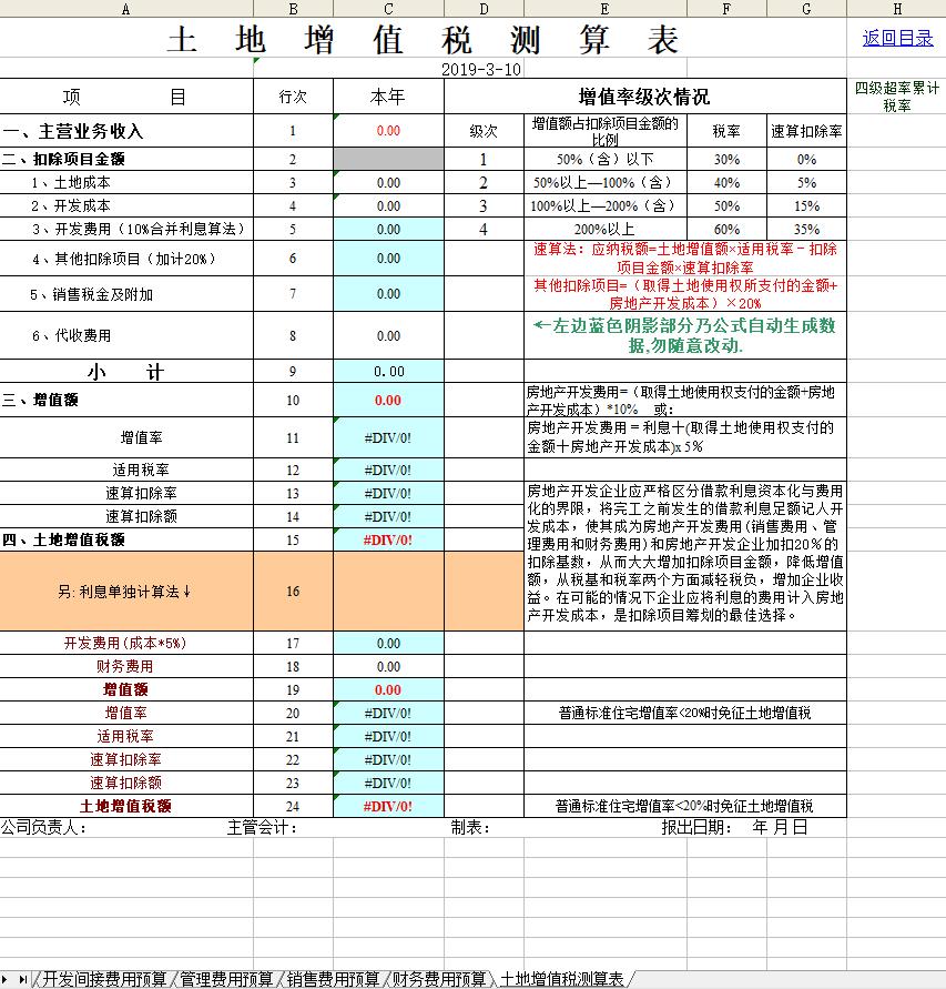 土地增值税测算表和项目成本利润预算表