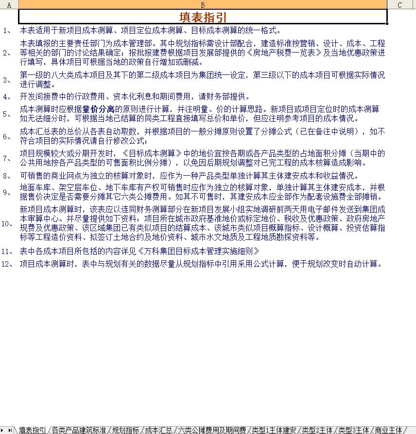 万科目标成本管理测算表[新项目成本测算、项目定位成本测算、目标成本测算].xls