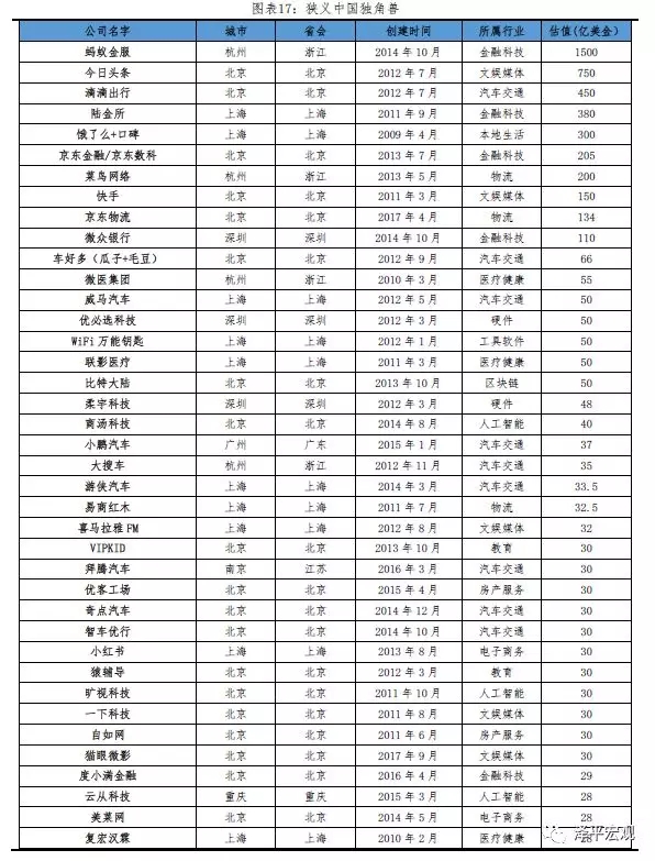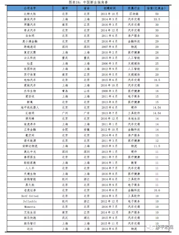 中国独角兽榜单、中国新生独角兽榜单(均按估值排序)