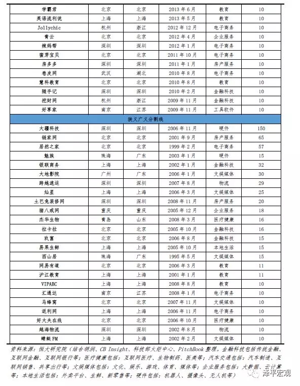 结合胡润、CB Insights科技部火炬中心和PitchBook发布的榜单,综合梳理,截止2018年12月31日,中国地区广义独角兽161家、总估值7134.9亿美元,其中狭义独角兽137家、总估值6524.9亿美元,分布在15个城市14个行业,其中超级独角兽共10家、新生54家、上市退出19家、因经营不善剔除3家。