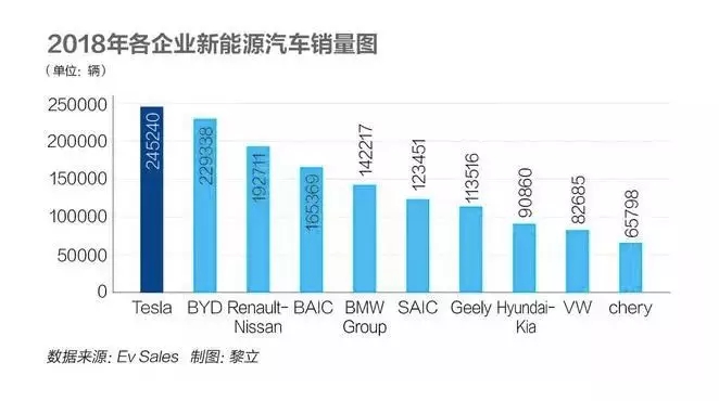 根据EVsales的新能源汽车销量数据显示,特斯拉销量居于榜首,国产品牌比亚迪及北汽新能源居榜眼探花。BBA豪车三强中唯一登上前十的是宝马集团,销量位于第五名。