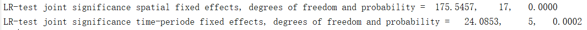 在空间面板数据模型中,你可能遇到了拒绝原假设的情况,这表明数据不支持使用简单的时间或空间固定效应模型。未能通过LM检验可能是由于模型中存在未捕捉到的空间依赖性或者空间自相关。