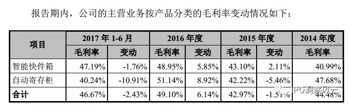 智能快件箱产品销售收入是智莱科技的主要收入,2015年至2017年上半年,占公司主营业务收入的比重分别为47.87%、84.76%、93.00%和92.56%。2015年至2017年上半年智能快件箱产品销售单台价格在2016年出现异常较大上涨,而剔除2016年异常情况,产品价格呈现下降的趋势。但产品价格下降,毛利率却保持稳定,比如2017年1-6月智能快件箱产品的价格相比2014年的价格低,但其毛利率却高于2014年,较为异常。