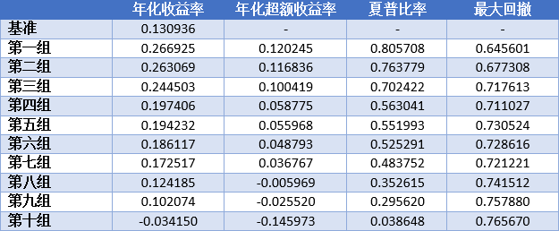 下面简单展示一下表现较好的IVFF历史十分组表现,可以看出其具有优良的选股区分能力和单调性。