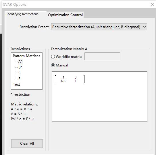 EVIEWS建立SVAR模型建立长期短期约束的详细步骤