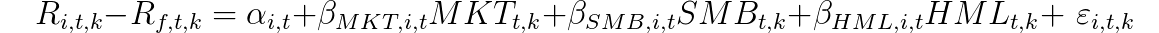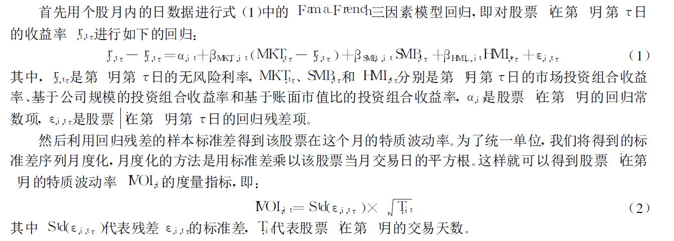 首先用个股月内的日数据进行Fama-French三因素模型回归,回归公式如下