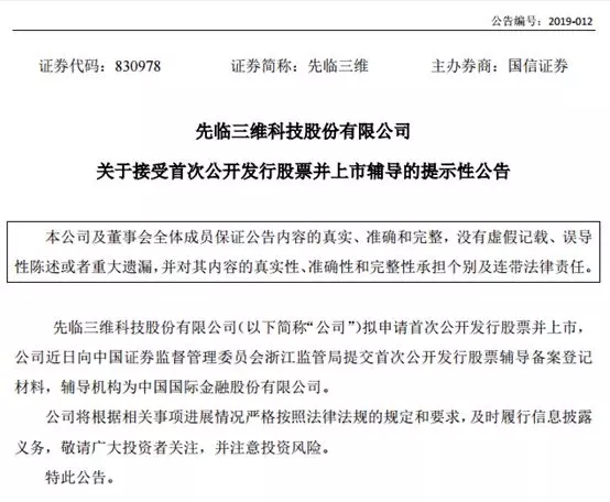 2月27日,先临三维科技股份有限公司(以下简称“先临三维”,代码830978)公告IPO上市计划,向中国证监会浙江监管局提交了首次公开发行股票辅导备案登记材料,辅导机构为中国国际金融股份有限公司(中金公司)。据中国基金报、e公司讯,先临三维计划赴科创板上市。看了看先临三维的财务指标,只符合科创板的上市条件,2018年预计扣除非经常性损益后的净利润仅仅470万元。