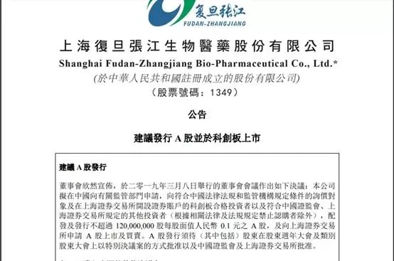 3月8日晚间,港股主板公司——复旦张江发布公告称,董事会已作出决议,公司拟在中国向有关监管部门申请,向符合条件的询价对象及在上交所开设证券账户的科创板合格投资者以及符合证监会、上交所规定的其他投资者,配发及发行不超过1.2亿股每股面值0.1元之A股,及向上交所申请A股上市及买卖。已经在香港上市了,还要回内地融资,看来科创板吸引力十足,起码融资市盈率等要有优势,否则回内地融资就亏大了。