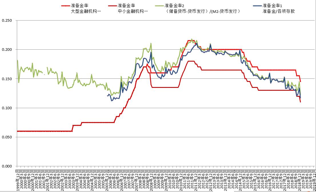 上图这根曲线,就是我国真实的存款准备金率的实际运行曲线。图中的这根曲线,由两种不同逻辑计算而得,但以蓝线(准备金/各项存款)为主要参考。红线则是央行法定准备金率的约束条件。