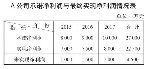 2015~2017年,A公司承诺净利润与最终实现净利润情况见下表: