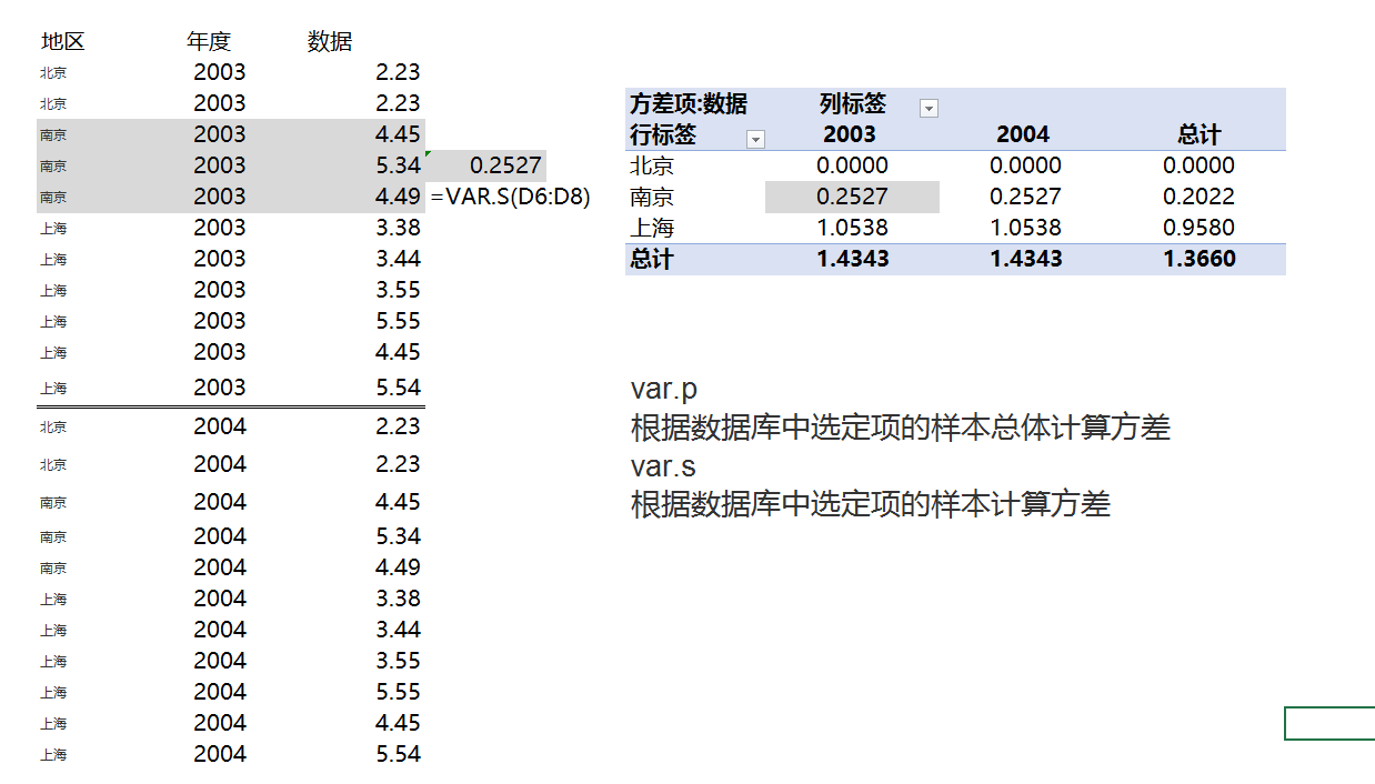 根据第二列数据计算每一年每个城市的方差,但是这里面每一年每个城市的数量不一样,怎么求方差?