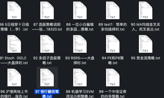 量化投资的重中之重是策略模型,本帖提供99个策略模型供大家参考学习(提供源代码)。