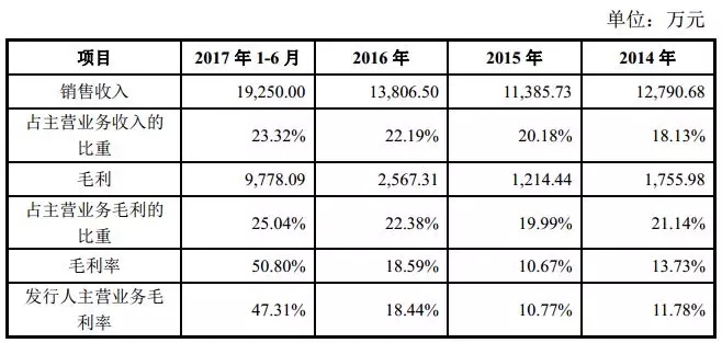 厦门钨业系发行人持股15%的第三大股东,厦门钨业董事长姜龙任发行人董事,厦门钨业对发行人有重大影响。根据发行人招股书披露,报告期内,发行人对厦门钨业销售毛利率与主营业务毛利率对比情况如下: