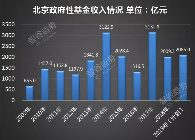 数据显示,2018年北京政府性基金收入(主要构成是卖地收入)只有2009.3亿元,相比14和17年的高峰期少了一千多亿。2019年估计也好不到哪里去, 2085亿的计划数,相当于4年前的水平。